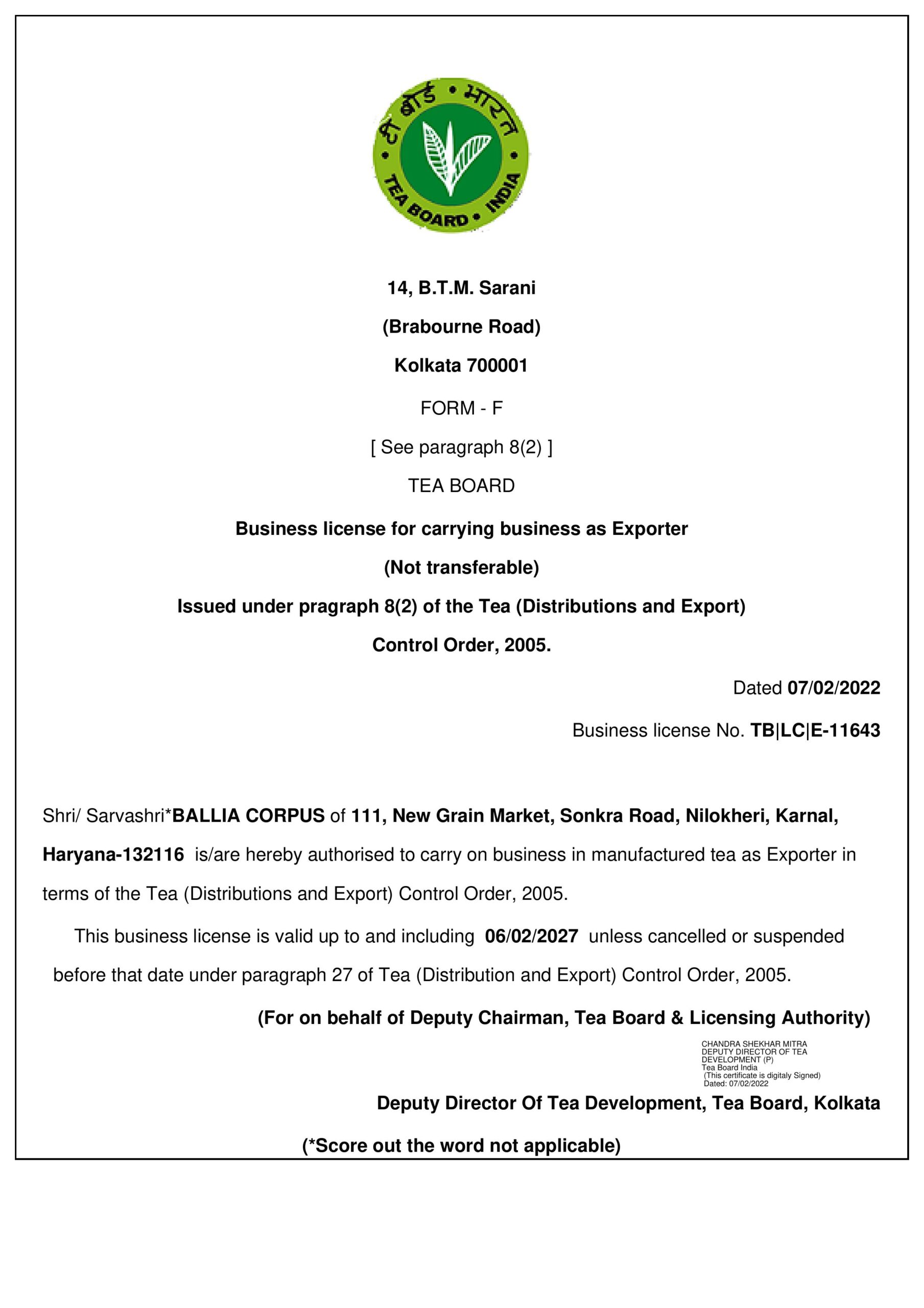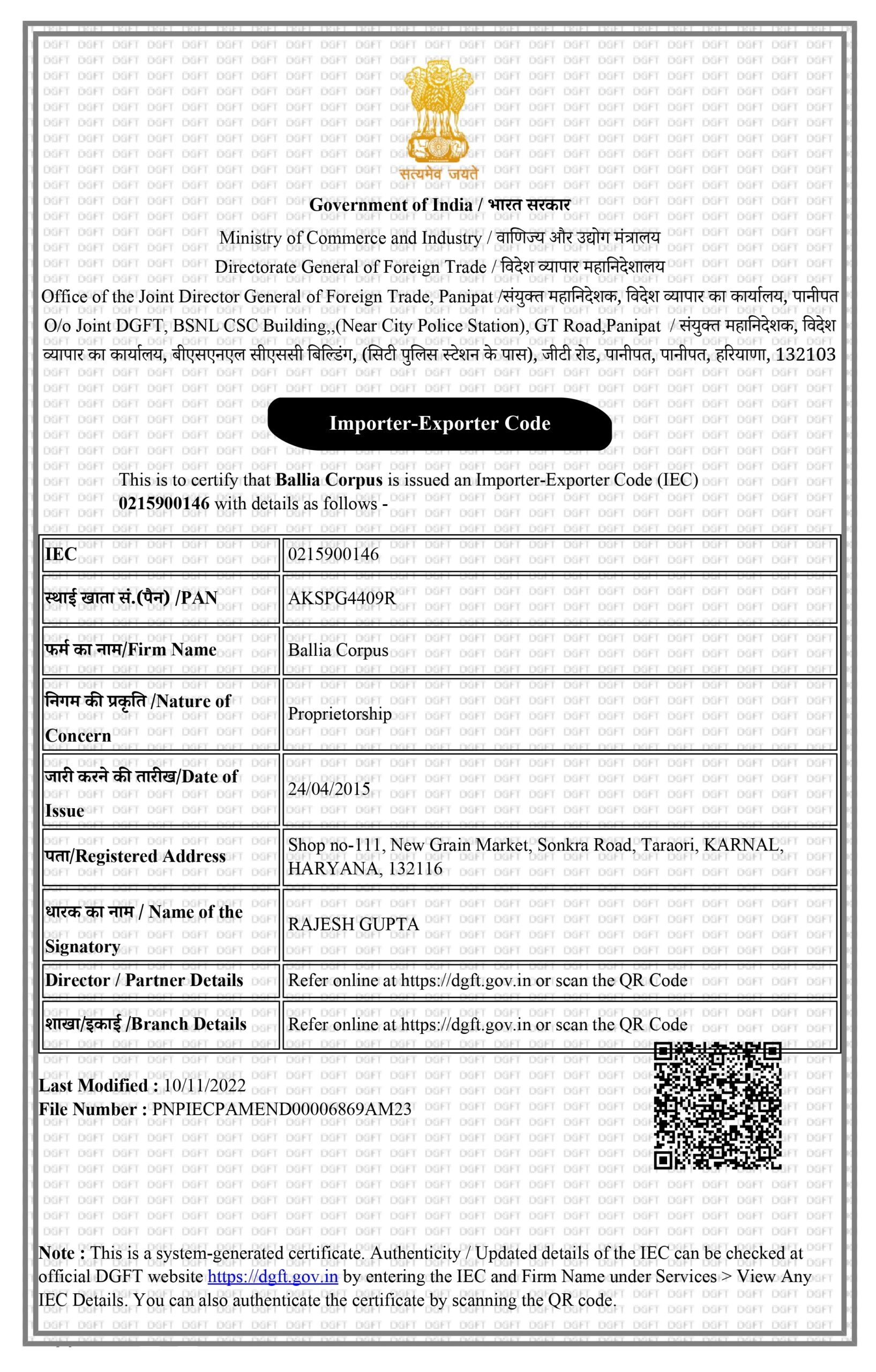 This registration ensures that the company operates in compliance with Indian taxation laws, facilitating transparent, accountable, and regulated trade operations.