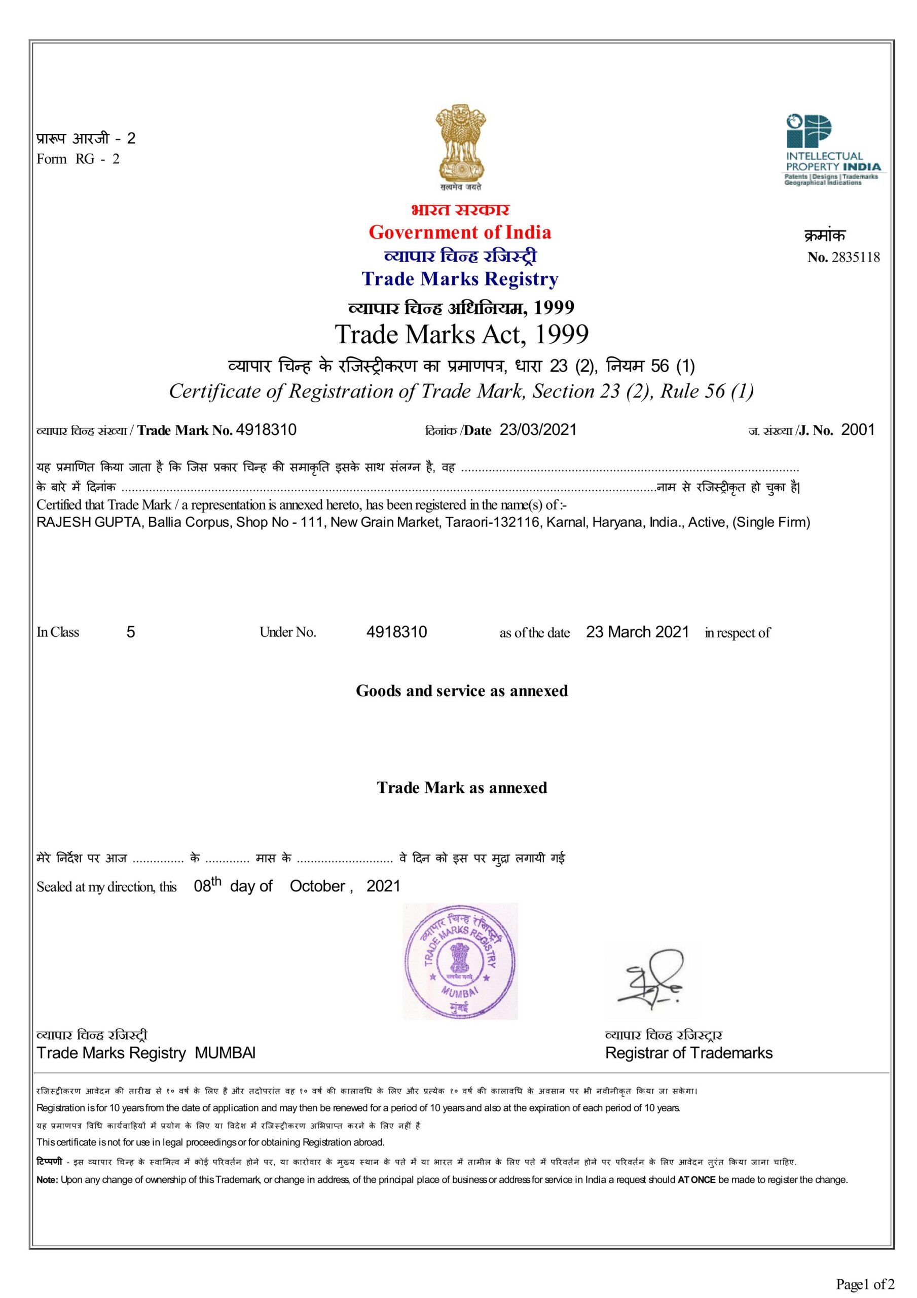 Our firm is duly registered under the Goods and Services Tax (GST) Act of India, enabling it to conduct lawful commercial transactions, including manufacturing, trading, and exporting of goods and services within India and internationally.