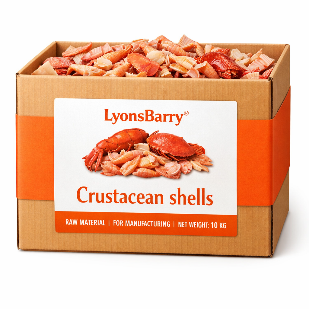 Supplied as purified crustacean shell material or processed chitin/chitosan with defined degree of deacetylation, molecular weight, and low residual protein content. Manufactured under GMP-compliant marine-processing systems with strict control on heavy metals, microbial load, and contaminants. Shellfish allergen declaration is mandatory. Suitable for FSSAI food & nutraceutical products and pharmaceutical or cosmetic applications (claims as per local regulations).